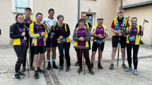 Nous fûmes encouragés par deux supporteurs du VOA, Eric et Ludovic, qui pendant que nous cherchions notre route indiquée par des petits fanions roses et évitions pierres et racines, se délectaient d’une pizza au foodtruck du village !